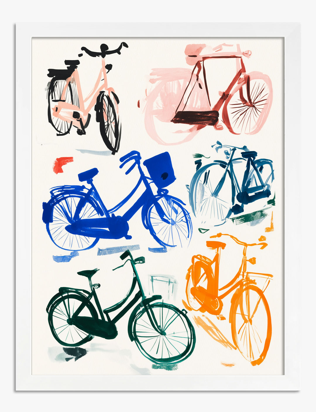 Vivid splashes of color bring a playful energy to your walls with this charming celebration of everyday movement. A medley of hand-drawn bicycles in bold pinks, blues, greens, and oranges instantly creates a sense of adventure and freedom. Perfect for your entryway or living room, this piece welcomes guests with a burst of personality and a nod to urban wanderlust. The dynamic palette pops against neutral backdrops and harmonizes effortlessly with modern, eclectic, or minimalist spaces. Let these whimsical bikes remind you that style doesn’t have to be complicated — just a little unexpected. With this print, you’ll feel proud to make your space uniquely yours, every single day.