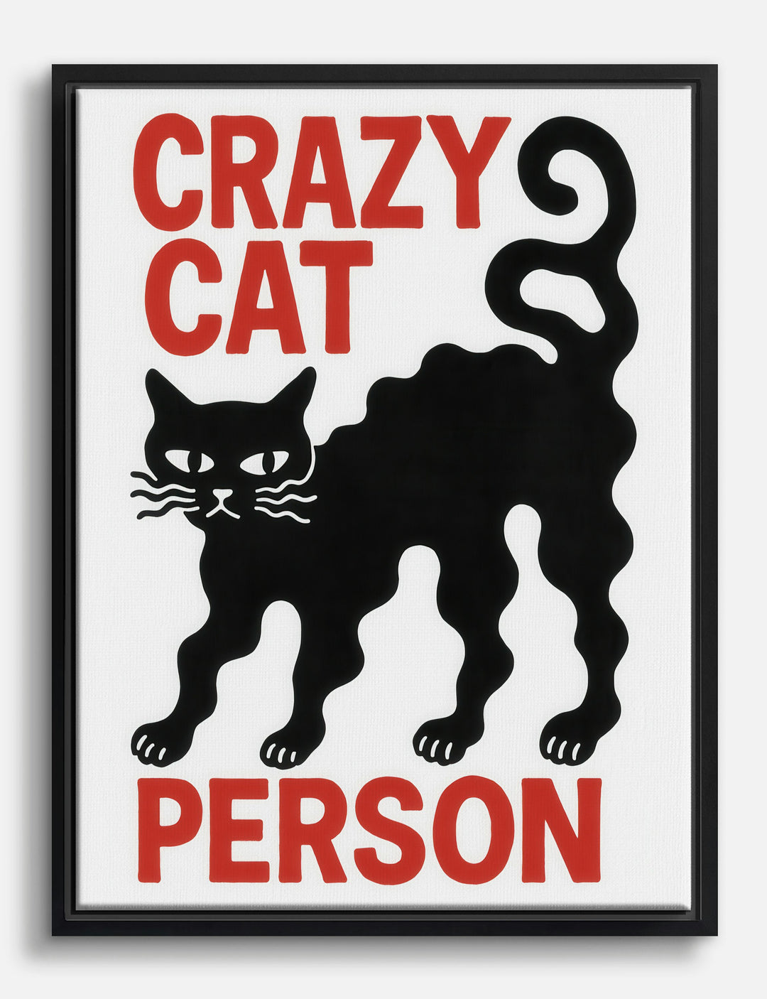 Embrace your inner feline fanatic with this bold and playful piece! Featuring a sassy black cat with a twisty tail, this art injects a dose of fun into any room. Perfect for your living room or office, the striking black and red design complements modern and eclectic styles alike. Let this artwork spark joy and conversation, making your space uniquely yours.