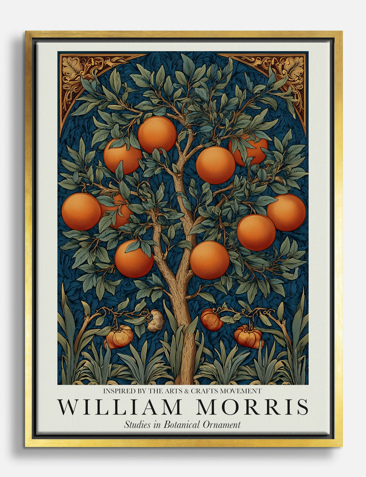 Step into a world where artistry and nature intertwine. Lush oranges and winding branches bring a sense of abundance and elegance, transforming your walls into a living tapestry. This William Morris-inspired piece instantly energizes any space, infusing it with the timeless charm of the Arts & Crafts movement.