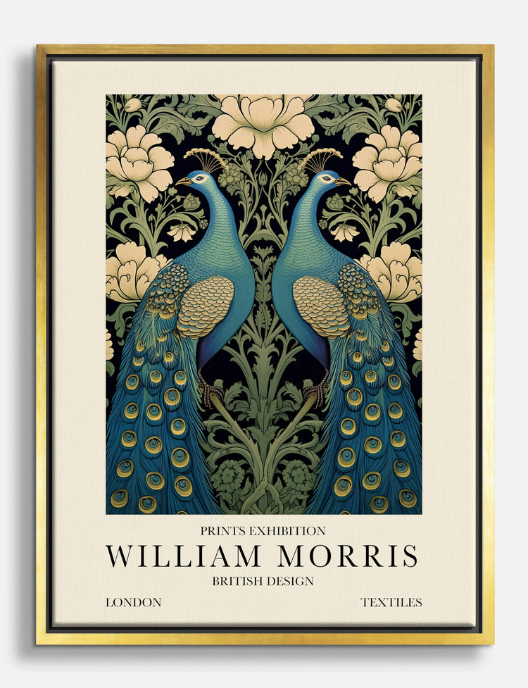 Step into a world of timeless beauty with this lush William Morris-inspired print. Peacock blues and soft botanical motifs instantly add sophistication and a touch of British charm to your space. Whether you hang it in your living room or bedroom, its rich colors and elegant symmetry make every day feel a little more extraordinary.