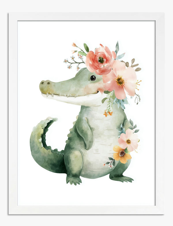 Poster cucciolo di tigre con corona di fiori ad acquerello