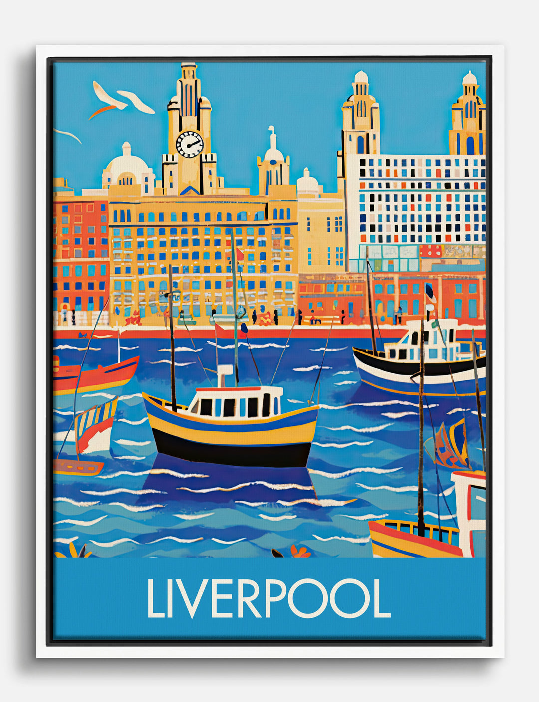 Sail into a vibrant cityscape with this lively Liverpool piece, where bold boats and iconic architecture meet in a wave of color. Your walls will pop with energy, instantly giving your space a boost of style and personality.