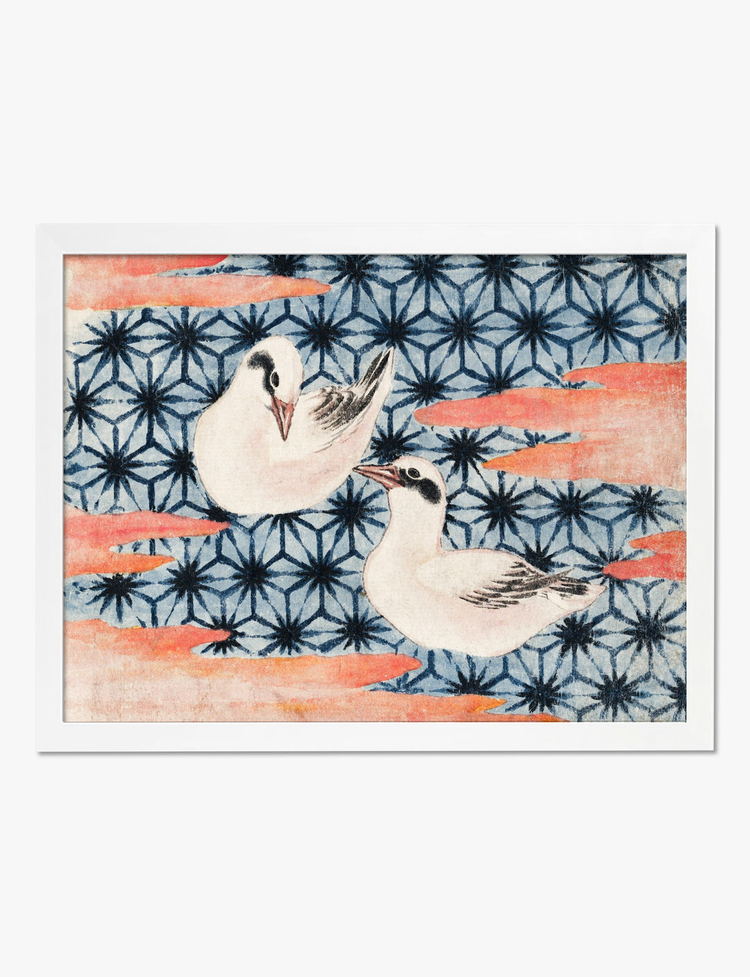 Senti la calma gentile della natura prendere il volo nel tuo spazio con questo motivo di uccelli ispirato a Hokusai. Due eleganti uccelli bianchi fluttuano con grazia su uno sfondo di intricati motivi a stella indaco e morbide nuvole color corallo, trasformando ogni parete in un momento di bellezza serena. Perfetto sopra il letto o per illuminare il soggiorno, porta un’atmosfera fresca e ariosa che solleva immediatamente l’ambiente. L’unione di blu delicati e rosa pesca lo rende un compagno versatile sia per gli interni moderni sia per quelli tradizionali: stile senza sforzo, garantito. Lascia che la tua casa rifletta il tuo amore per l’arte e l’individualità. Con questo poster, susciterai conversazione, ammirazione e un senso di orgoglio ogni volta che ci passerai accanto. Il grande stile può essere così semplice.