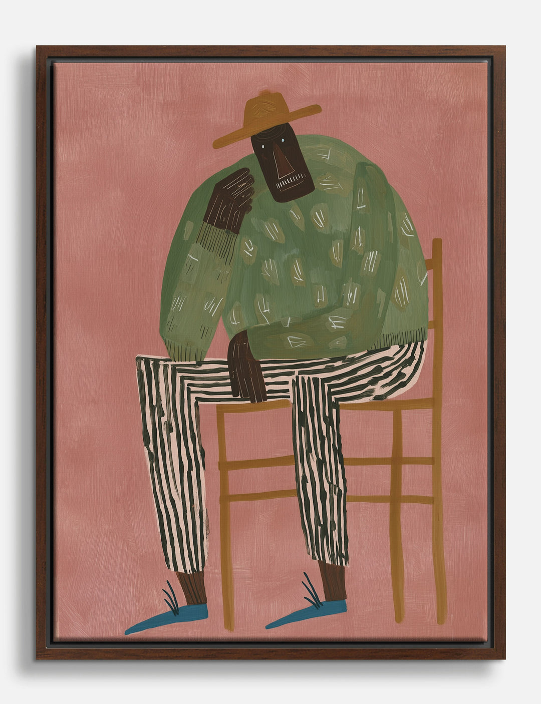 Bold stripes and gentle greens invite both curiosity and calm into your space. This portrait radiates quiet confidence—perfect for those moments when you want your home to feel both welcoming and wonderfully unique. The soft blush background and playful, patterned sweater bring warmth and style that easily blend into any modern living room or cozy bedroom. Hang it where you relax or recharge—its earthy tones and quirky charm effortlessly complement everything from minimalist decor to eclectic collections. It’s more than just a piece on your wall; it’s a conversation starter, a mood lifter, and a daily reminder to own your style. Let your space tell your story—one full of personality, comfort, and affordable transformation.