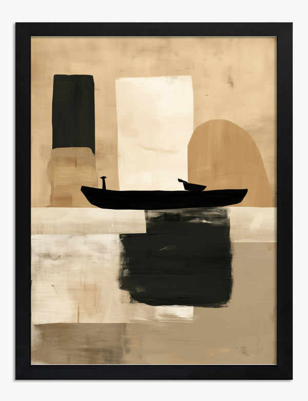 Poster silhouet van een boot in beige en zwart