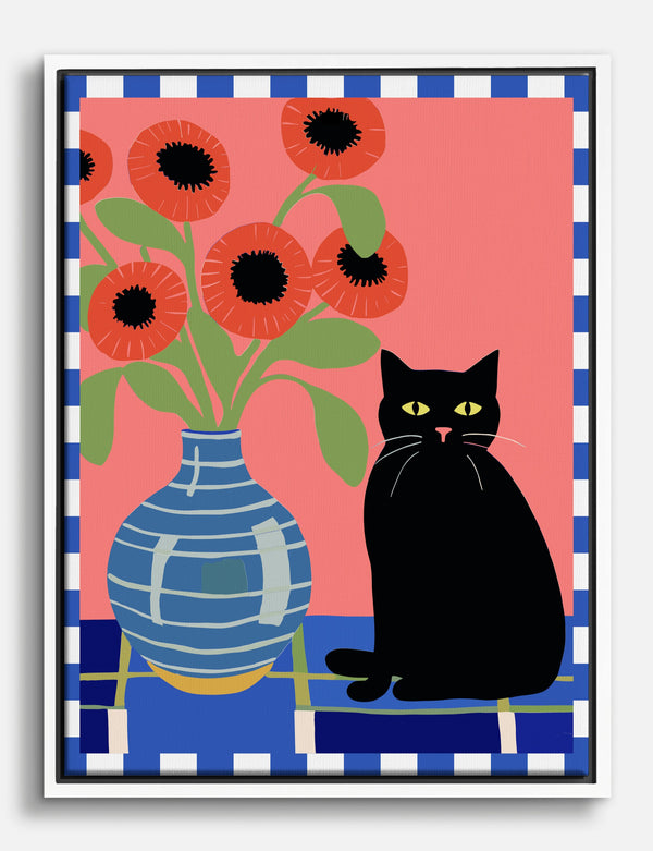 Vibrant Cat & Vase Canvas Print