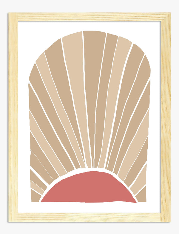 Poster zonsopgang in zachtroze en beige