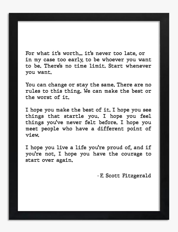 Poster F. Scott Fitzgerald citaat in zwart-wit
