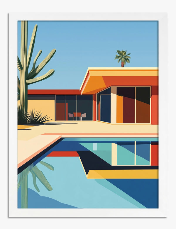 Poster modernistische oase aan het zwembad