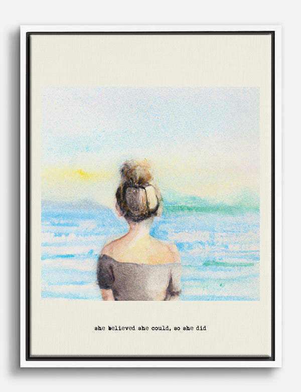 Les deux sont canon, c'est juste une question d'ambiance. L'affiche encadrée, c'est chic et moderne : parfait pour un rendu galerie impeccable. La toile, c'est plus doux, plus chaleureux, avec une texture qui se marie bien aux espaces cosy ou bruts. Dans tous les cas, chaque pièce est faite sur mesure avec des matériaux premium et arrive prête à accrocher.