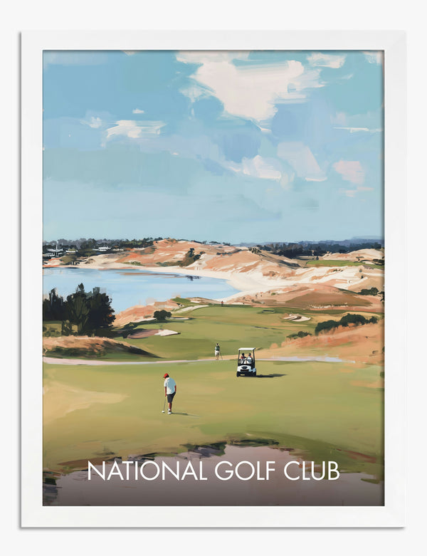 Poster uitzicht op golfbaan aan zee