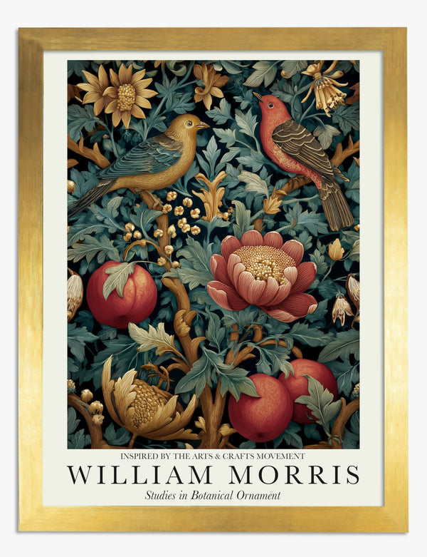 Poster vlinder tussen wilde bloemen in Morris-stijl