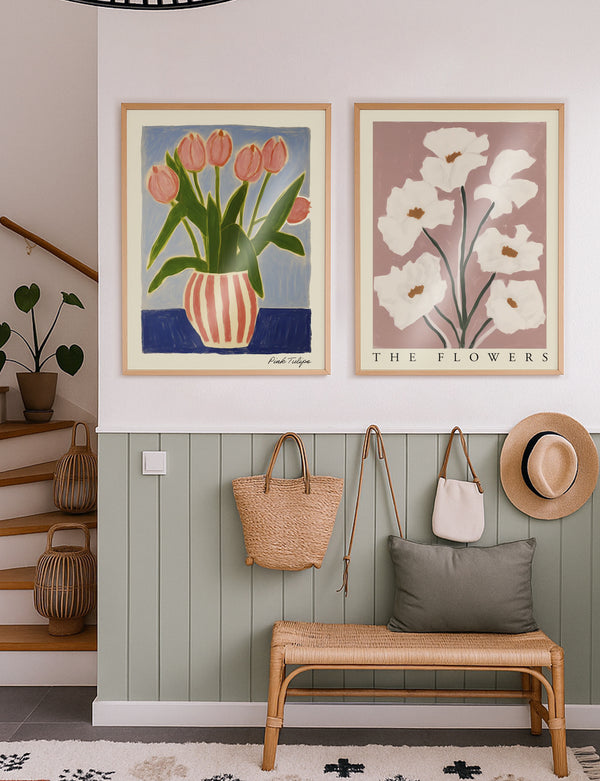 Ingelijste prints zijn strak, modern en veelzijdig — perfect als je een gepolijste, galerieachtige look wilt. Canvas geeft een zachtere, meer organische uitstraling, met textuur en warmte die prachtig werkt in relaxte of rustieke ruimtes.