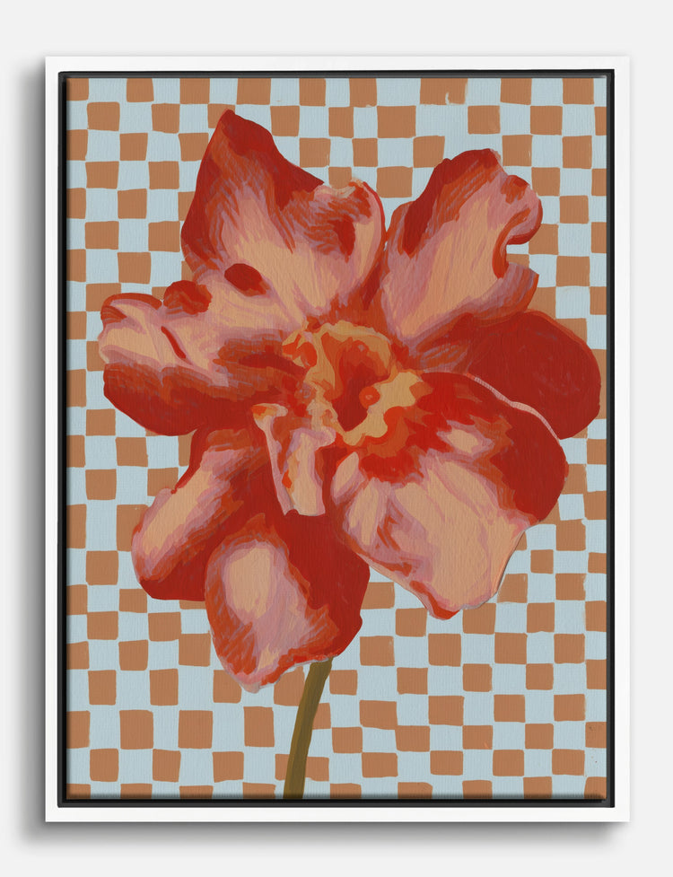 Like a pop of confidence in your space, this striking red flower bursts to life against a playful checkered backdrop. It’s a statement piece that instantly energizes any room, sparking joy and creativity every time you walk by.