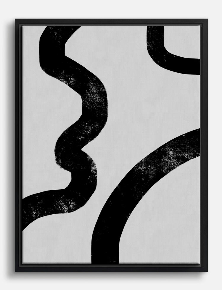 Feel the power of simplicity with this striking monochrome piece. The bold black curves against a soft grey background create a dynamic visual that energizes any room. Perfect for your living room or office, its minimalist charm effortlessly complements modern decor while adding a touch of sophistication. Transform your space with ease and let this unique artwork be a statement of your personal style.