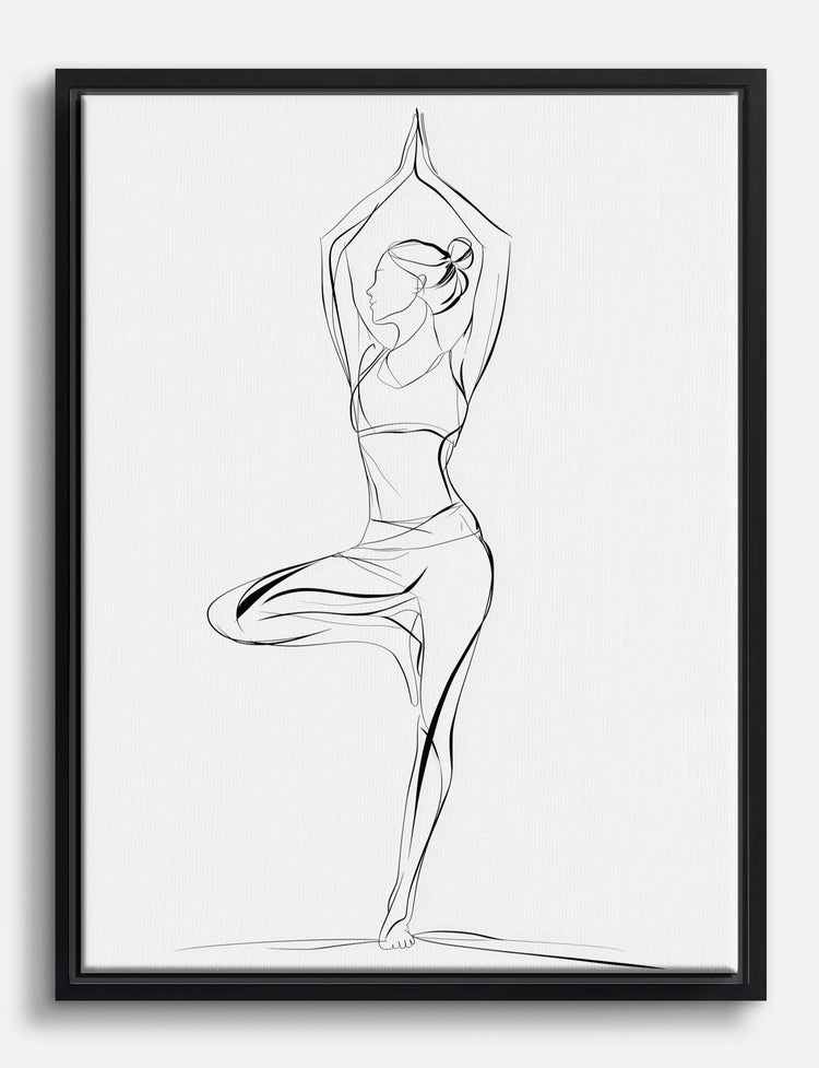 Vind je balans met de moeiteloze elegantie van deze minimalistische lijntekening. Een enkele, vloeiende figuur houdt een beheerste yogahouding aan en straalt kalme zelfverzekerdheid en innerlijke kracht uit. Een visuele pauze: een uitnodiging om te ademen, te stretchen en ruimte te maken voor rust in je dag. Perfect voor je slaapkamer, thuisgym of een rustig hoekje in de woonkamer; dit canvas brengt direct helderheid en focus. Het tijdloze zwart-wit past bij elke woonstijl en laat zich makkelijk combineren met je favoriete kleuren en texturen. Laat dit kunstwerk een rustpunt zijn in je huis én in jezelf. Het is een stijlvolle herinnering om zelfzorg en mindfulness prioriteit te geven, terwijl je huis er moeiteloos chic uitziet.