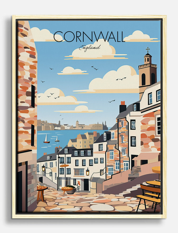 Step into sunlit streets and sea-kissed air—this vibrant Cornwall scene brings vacation vibes home, every day. Crisp blues and warm earth tones pop against friendly cottages and a sparkling harbor, creating a mood that’s both uplifting and relaxed.