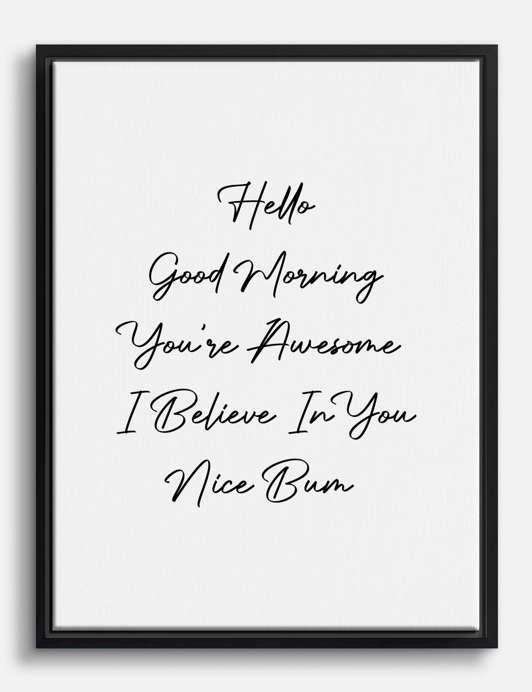 Start your day with a smile and a wink—this playful script brings a burst of encouragement to your walls. With its modern flowing handwriting and cheeky final note, it’s the perfect pick-me-up for mornings and every moment in between.