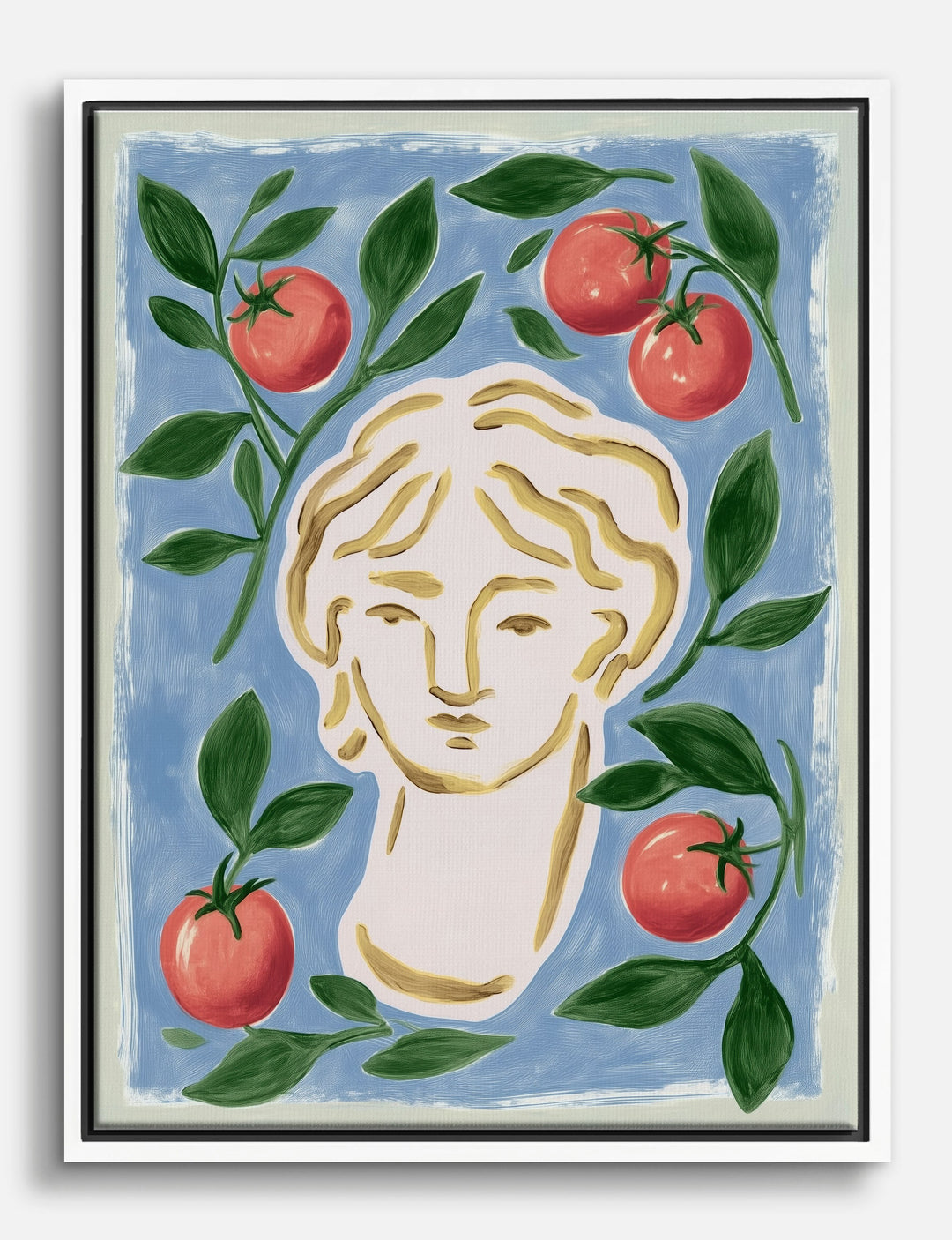 A soft goddess gaze meets the juicy glow of ripe fruit—this piece brings a playful elegance wherever it lands. You’ll love how the gentle blue and lush green palette instantly freshens up your living room or bedroom, making the space feel vibrant and inviting.