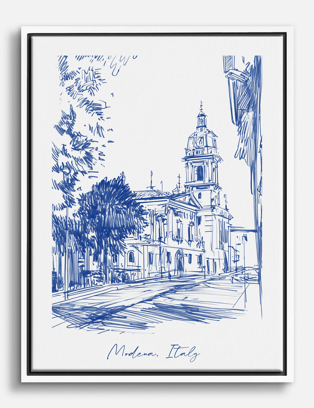 Transport yourself to the enchanting streets of Modena with this elegant line drawing. The crisp blue lines capture the timeless beauty of Italian architecture, adding a touch of sophistication to any room. Perfect for your living room or office, this piece complements both modern and vintage decor styles. Youll feel a sense of pride and joy as this artwork transforms your space into a stylish haven.