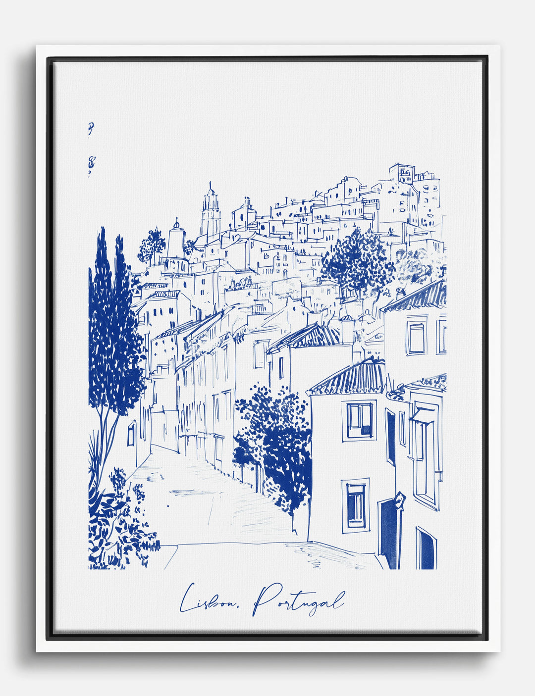 Capture the charm of Lisbon with this elegant blue line illustration. Perfect for adding a touch of European sophistication to your space, it’s a piece that transports you to sunlit streets and historic architecture. Ideal for a living room or study, the blue hues effortlessly complement modern and minimalist decor, bringing a sense of wanderlust and style into your home.