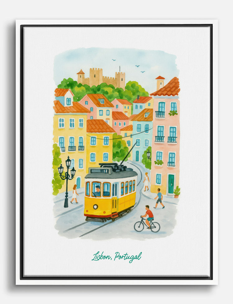 Sunshine yellow and pastel rooftops — this piece instantly transports you to the heart of Lisbon’s vibrant streets. The iconic tram winds through a hillside of candy-colored homes, inviting movement, energy, and a hint of adventure right into your space.