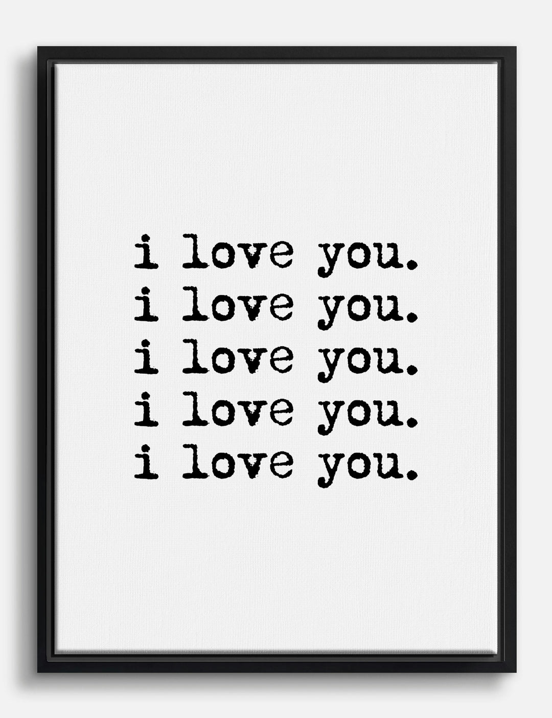 Boldly express your affection with this charming typewriter-style typography piece. Perfect for adding a touch of love to your bedroom or living room, this artwork speaks directly to the heart. Its minimalist design and classic black and white palette ensure it complements any decor style, offering a personal and stylish statement that transforms your space with warmth and emotion.