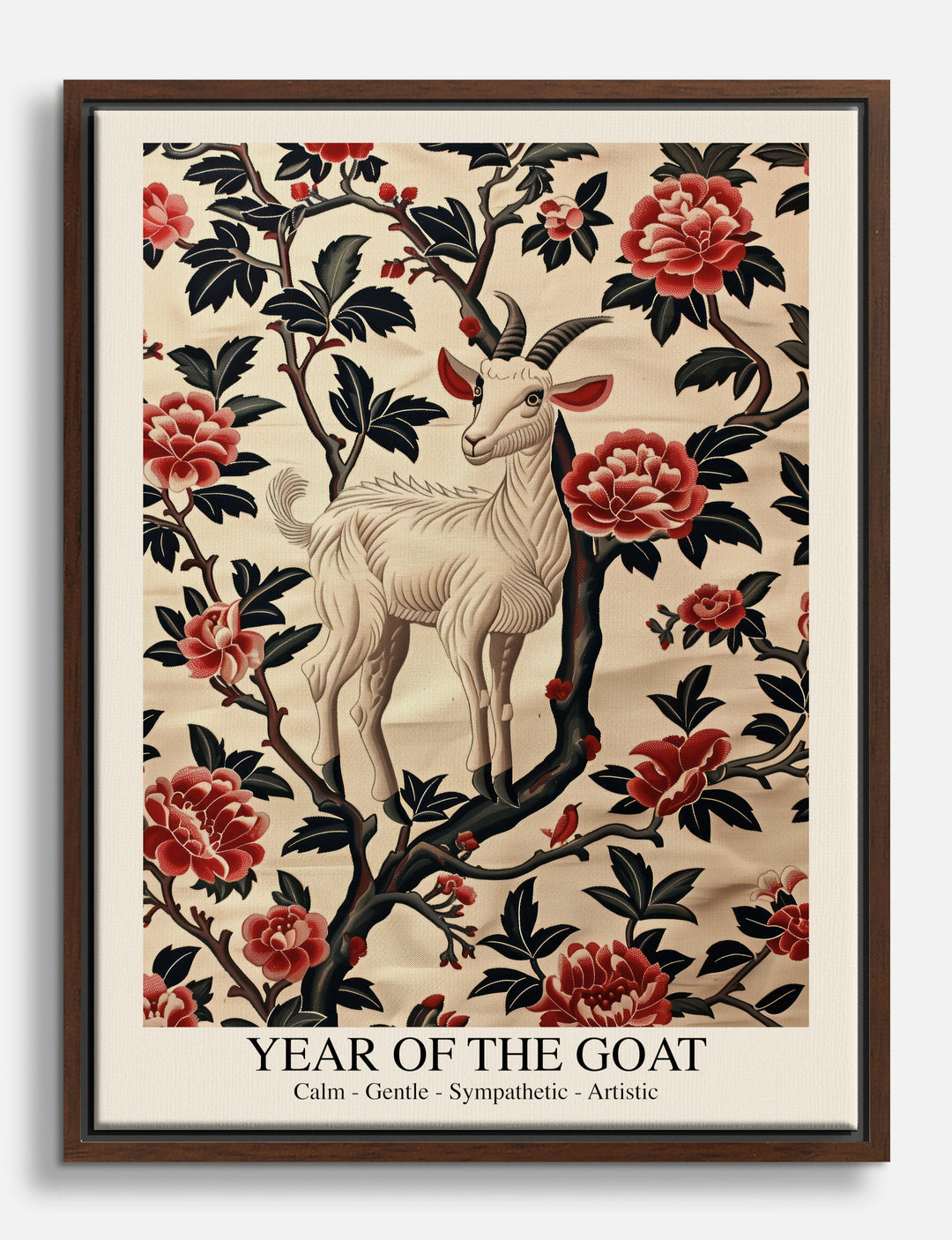 A gentle goat stands among lush, blooming branches, infusing your space with a sense of calm artistry. This piece radiates tranquility and creativity, perfect for anyone who wants their home to feel both grounded and expressive.