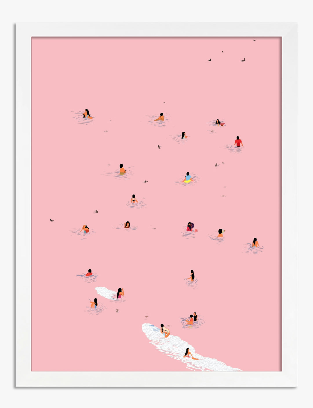 Kleine zwemmers drijven over een zee van speels roze en geven je muren een gevoel van vrijheid en speelsheid. Deze poster straalt vrolijkheid uit en laat elke kamer direct lichter en levendiger aanvoelen.