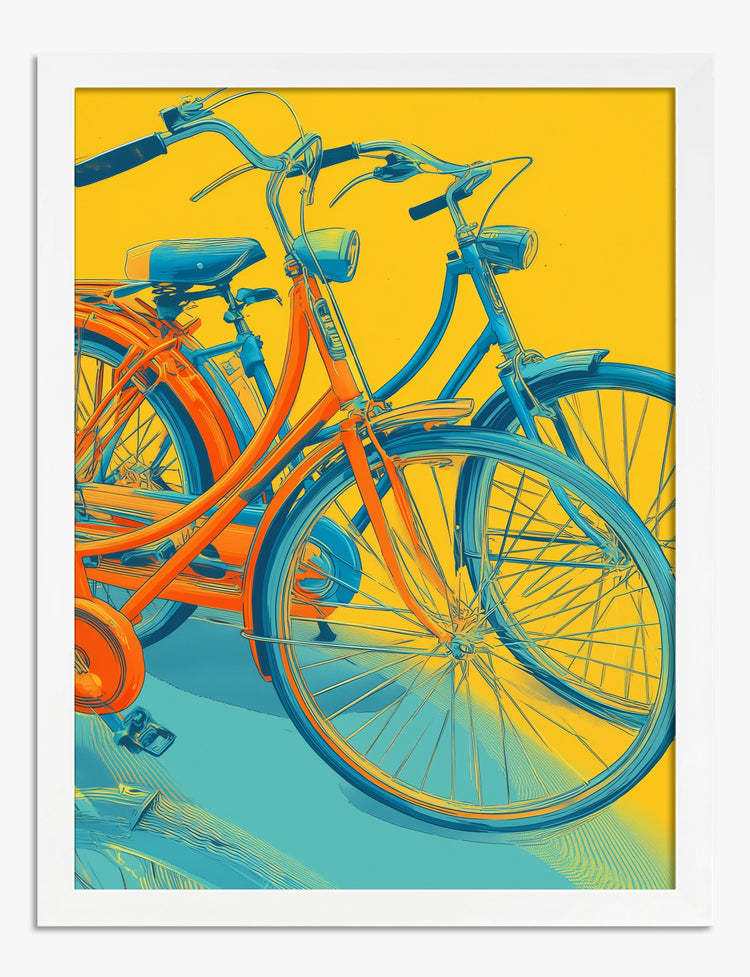 Ready to energize your space? This bold, pop-inspired bicycle piece brings a shot of vintage cool wherever it lands. The electric orange and turquoise palette instantly wakes up your walls, making even the simplest room feel playful and fresh. Perfect for your living room, office, or entryway, it’s an effortless way to show off your unique style without overthinking it. The retro bicycles invite nostalgia and adventure—reminding you daily that a little joy goes a long way. Pair it with modern or mid-century decor, or let it be the standout in a minimalist setting. With Fab, transforming your home into a place you love is easier (and more affordable) than ever.