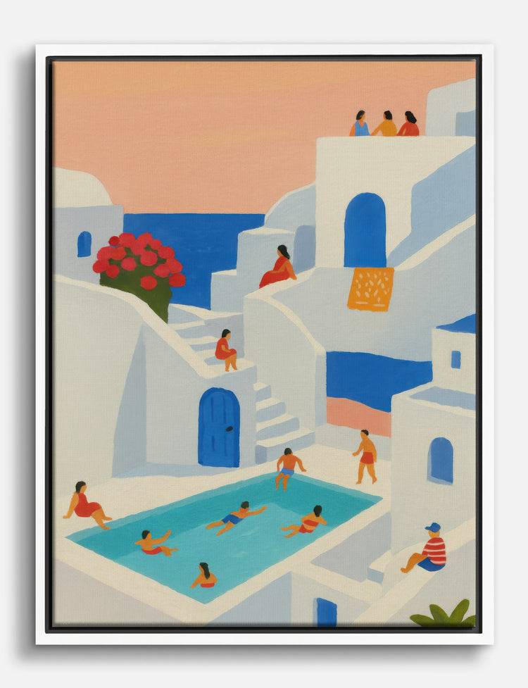 Cool white walls, sparkling turquoise waters, and pops of Mediterranean blue—this piece instantly transports you to a dreamy Greek getaway. Whether you’re craving vacation vibes or a daily dose of sunshine, this art will bring effortless joy to your space. Hang it in your living room or bedroom and let its playful colors and relaxed mood brighten every day. You don’t need a plane ticket to feel a world away—just this slice of Santorini on your wall.