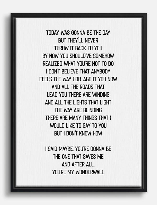 Wonderwall Lyrics Typography Canvas Print