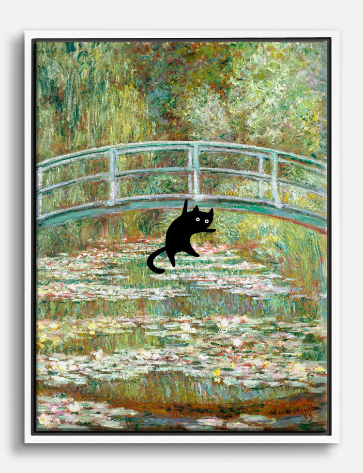 A black cat’s cheeky leap brings a whimsical twist to Monet’s iconic water lily pond, making this piece both classic and unexpected. Watch your living room or bedroom come alive with gentle greens and dreamy brushstrokes, punctuated by a pop of playful personality. Perfect for anyone craving a splash of charm and a touch of art history, you’ll love how easily this piece sparks conversation and freshens up your space.