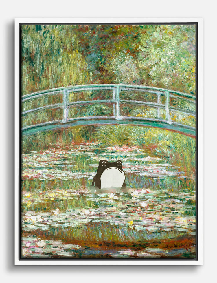 A gentle bridge arches over a dreamy lily pond, but it’s the delightfully unimpressed frog that steals the show. This playful twist on Monet’s classic brings a smile and a spark of personality to your space.