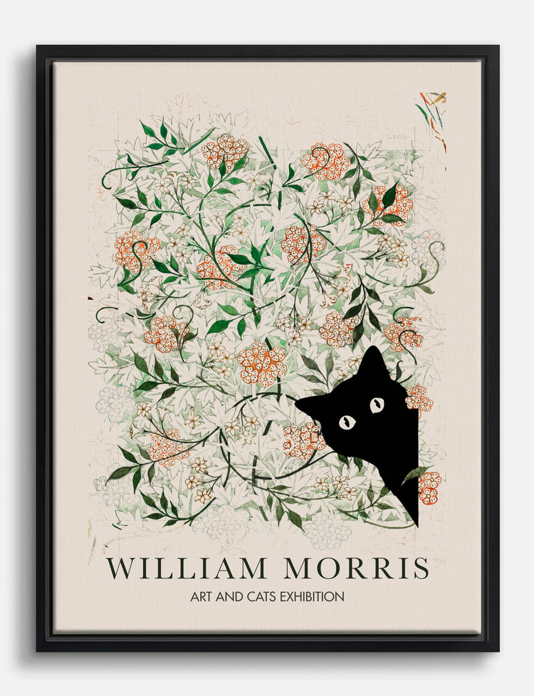 A curious black cat peeks through a lush tapestry of jasmine flowers, inviting a sense of playful elegance into your home. This piece instantly brightens your space, blending classic botanical beauty with a whimsical twist that’s sure to spark conversation.