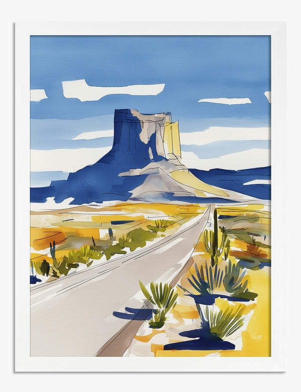 Poster Arizona woestijnlandschap met open weg in aquarel