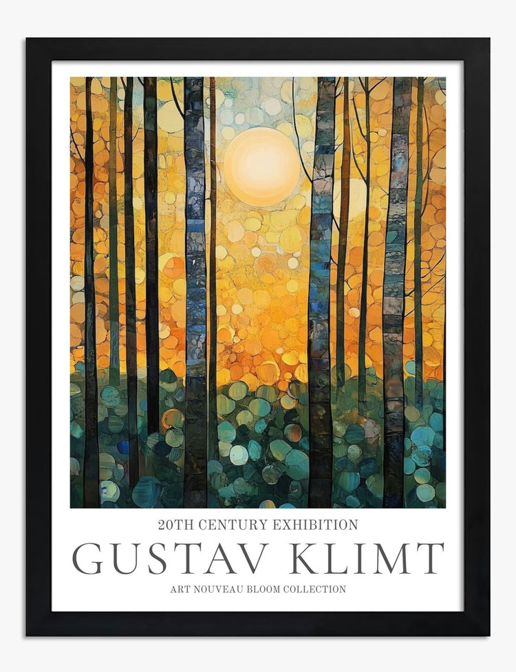 Step into a world of golden tranquility with Klimts Sunlit Forest. This captivating piece brings the warmth of a sunset and the magic of nature into your home. Perfect for your living room or bedroom, its rich palette of oranges and blues harmonizes effortlessly with modern and vintage decor. Let this masterpiece be a daily reminder of beauty and serenity, transforming your space into a haven of style and comfort.