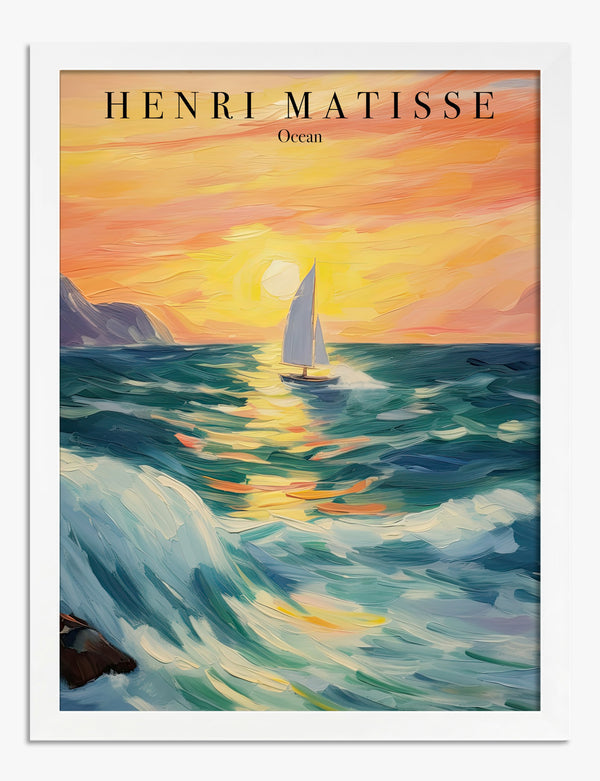 Poster zonsondergang aan zee in de stijl van Henri Matisse