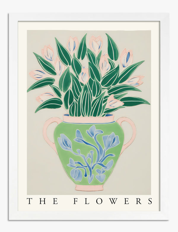 Poster zachtroze vaas met botanisch motief
