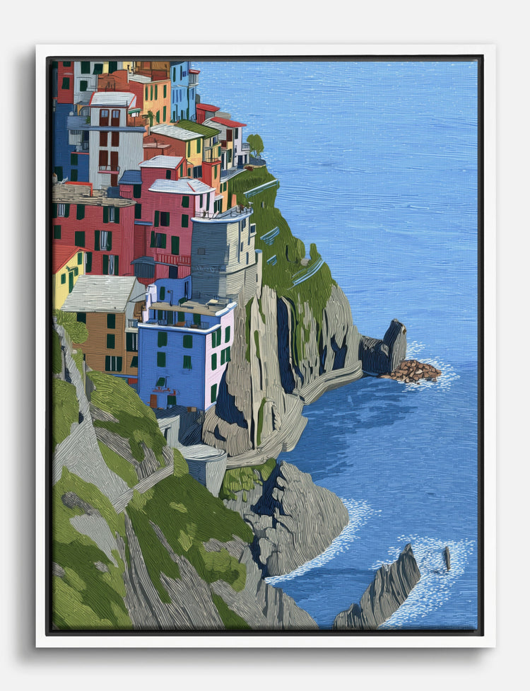 Bold cliffs meet a splash of pastel rooftops in this vibrant coastal escape. Every glance at this piece feels like a mini-vacation, inviting you to unwind and soak up that breezy Mediterranean vibe.