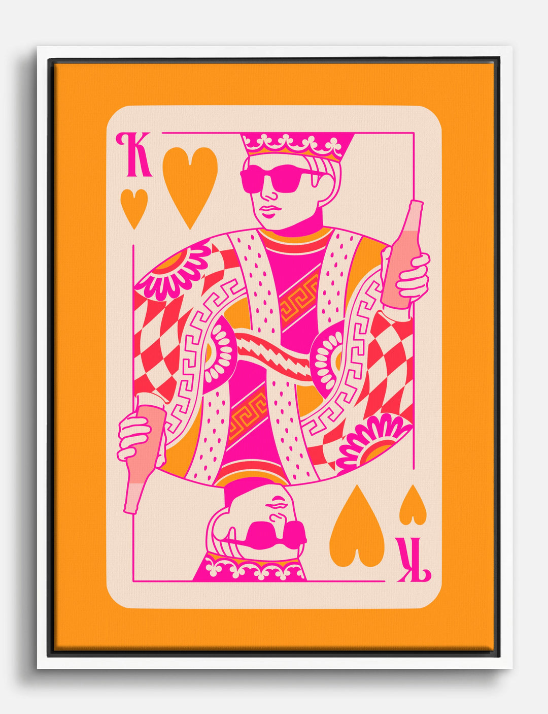 Step into a world where style meets fun with this vibrant piece. The bold pinks and oranges electrify your space, making it the perfect addition to your living room or home bar. Let this playful artwork be a conversation starter, effortlessly transforming your home into a chic, inviting haven. With its unique color palette, it seamlessly complements modern and eclectic decor, bringing a touch of joy and personality to your walls.