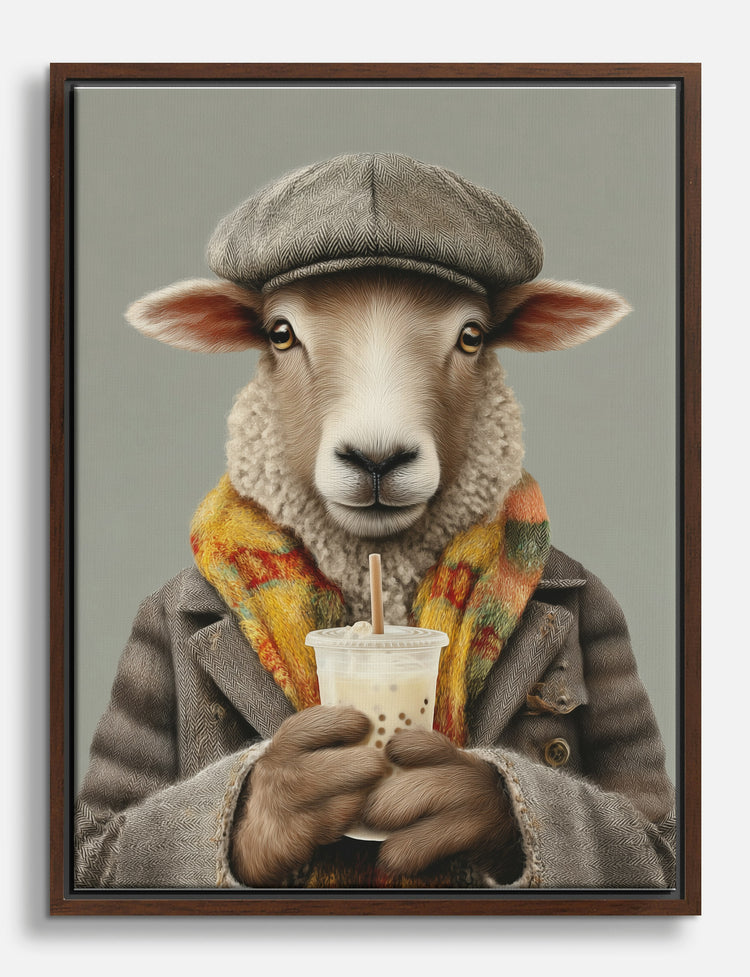 Wrap your space in warmth and whimsy with this charming artwork. A stylish sheep, dressed in a cozy hat and scarf, sips on bubble tea, bringing a playful touch to your decor. Perfect for adding personality to your living room or study, its gentle hues blend effortlessly with any style. Feel the joy and uniqueness it brings, making your home a reflection of your vibrant personality.
