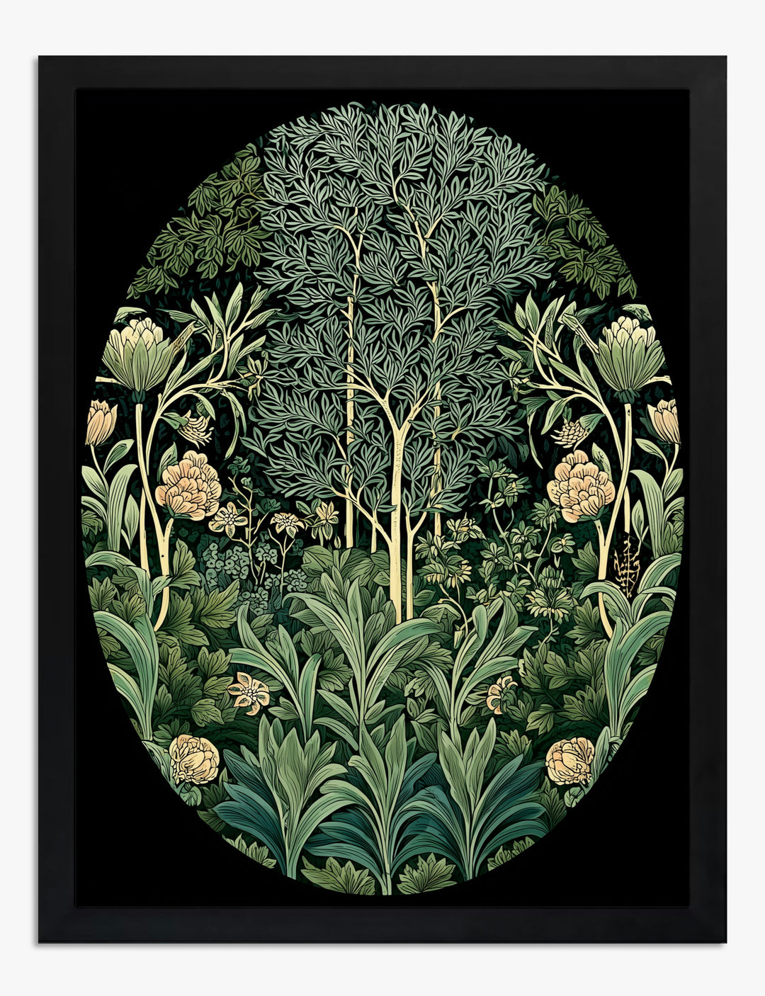 Step into a world where nature feels almost magical—a lush tapestry of greens and golds, blooming with elegant Art Nouveau curves. This piece brings the outdoors in, making your space feel both calming and alive. It’s the kind of artwork that instantly elevates your living room or bedroom, adding a sense of quiet sophistication and fresh energy. The harmonious palette of deep forest greens and soft creams pairs beautifully with both modern and vintage decor, giving you endless styling options. Let this garden-inspired piece be your daily reminder that transformation doesn’t have to be complicated—you can create a home you’re proud of, one stunning detail at a time.