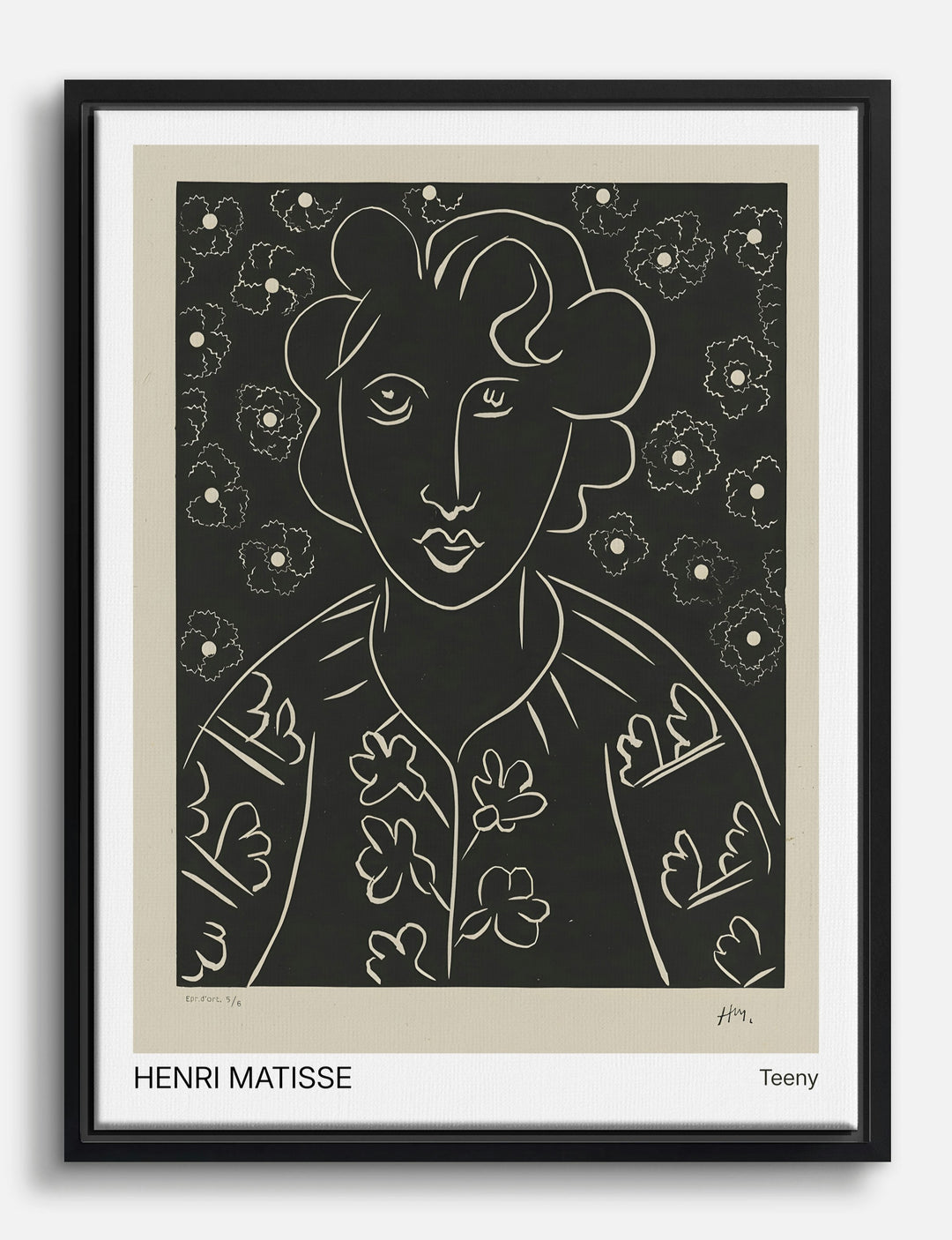Bold lines meet effortless elegance in this striking portrait by Henri Matisse. The simple, floral patterns and confident curves bring a sense of calm sophistication to your space, making it feel instantly more curated and unique.
