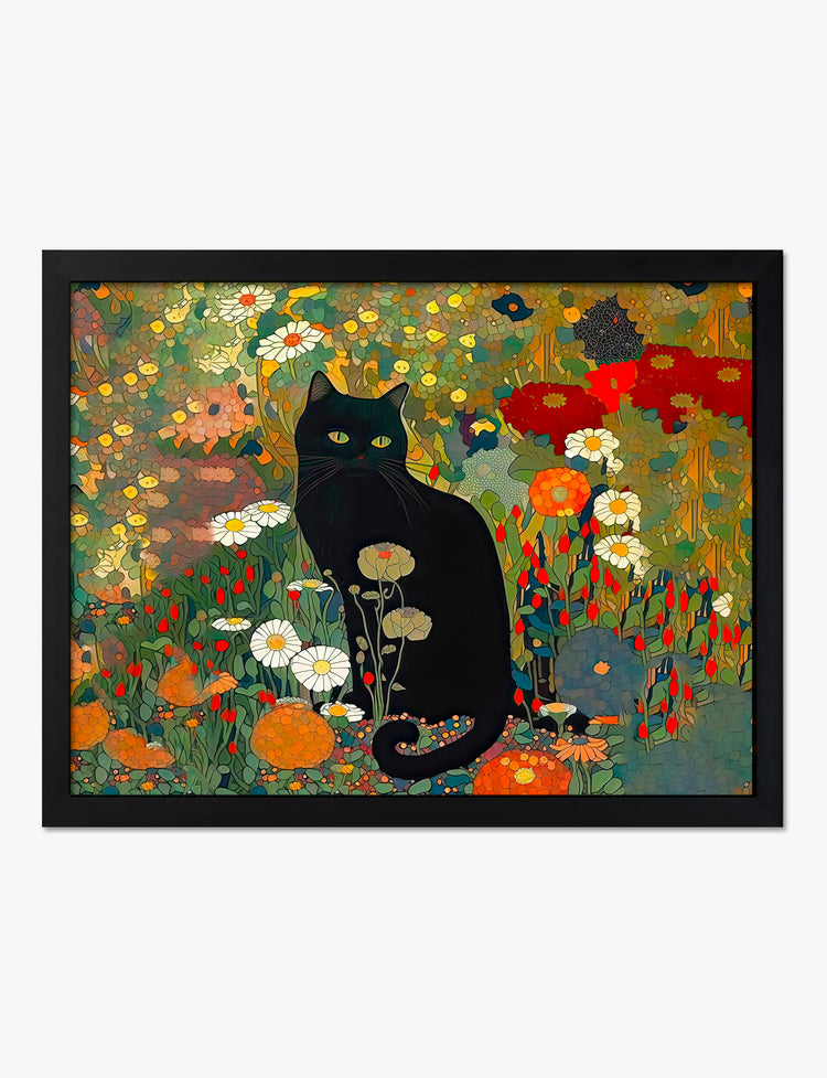 A midnight-black cat sits regally among a riot of wildflowers, instantly drawing the eye and sparking curiosity. This piece brings a whisper of mystery and a dash of artistic flair to any space. Every glance reveals new pops of color and detail, making it a conversation starter you’ll love showing off. Perfect for your living room or bedroom, this artwork pairs beautifully with cozy neutrals, bold jewel tones, or even eclectic vintage finds. It’s more than just a statement piece—it’s a celebration of individuality and creativity you’ll be proud to display. Bring home a little magic and let your walls tell a story that’s all your own—effortless style, just the way you like it.