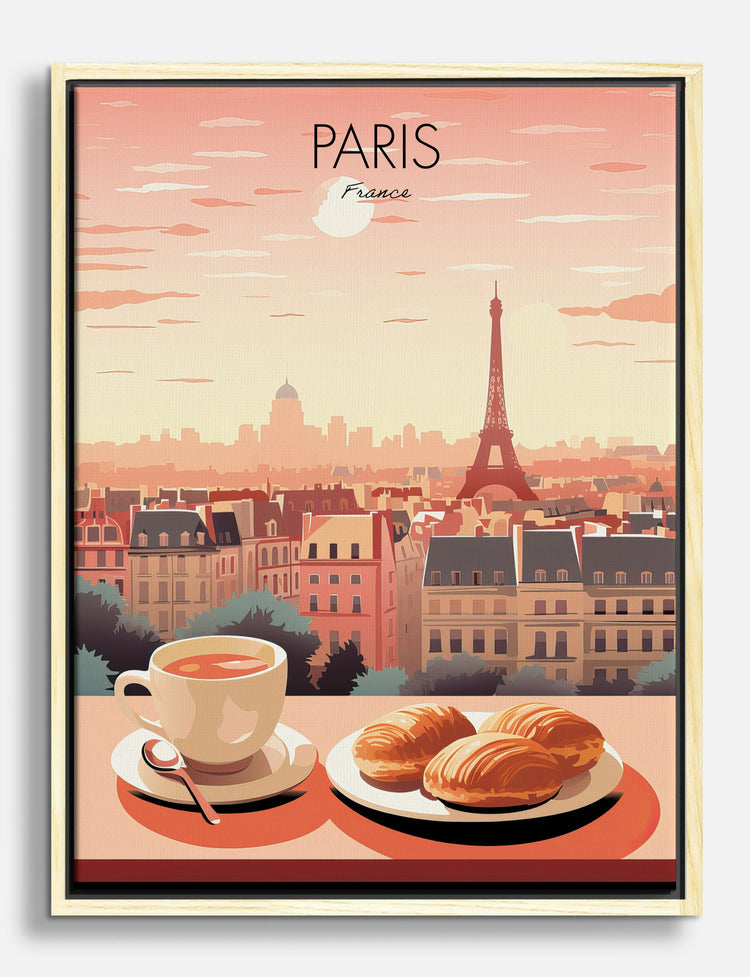 Golden sunlight spills over iconic rooftops as you savor fresh croissants and coffee—right from your own wall. This charming Paris scene brings a touch of French café culture to your space, perfect for anyone who loves a dash of wanderlust with their decor.