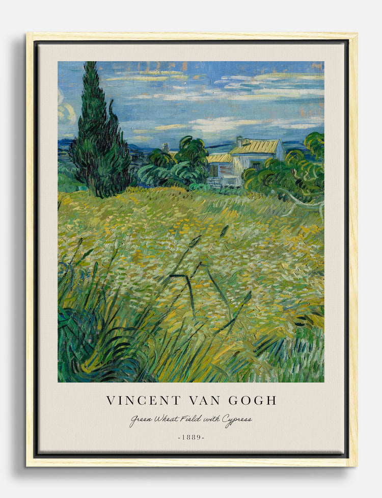 Step into a moment of pure calm—where golden grasses sway gently under a wide, sunlit sky. Van Gogh’s “Green Wheat Field with Cypress” brings a breath of fresh countryside into your home, infusing your space with vibrant energy and timeless style.