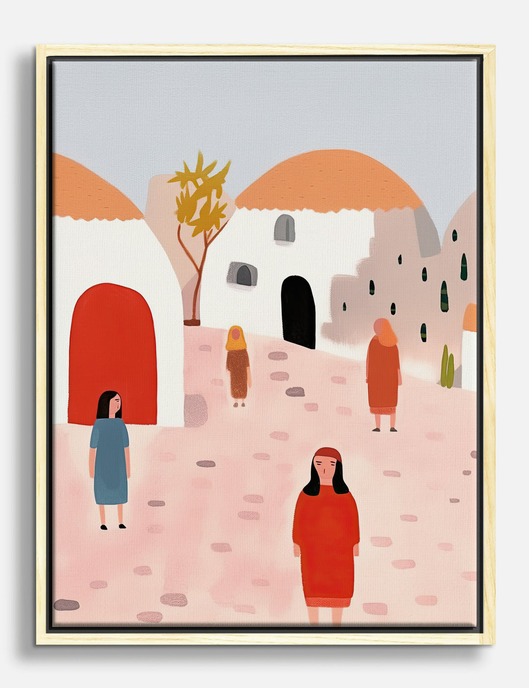 Warm terracotta rooftops and soft silhouettes invite you into a sunlit village scene, where every detail feels both nostalgic and refreshingly modern. This piece instantly adds a sense of calm and understated charm to your space, perfect for brightening up your living room or creating a serene corner in your bedroom. The blush and clay palette pairs beautifully with minimalist or boho decor, making your home feel unique and effortlessly stylish. With Village Strolls, your walls tell a story of community and quiet beauty.