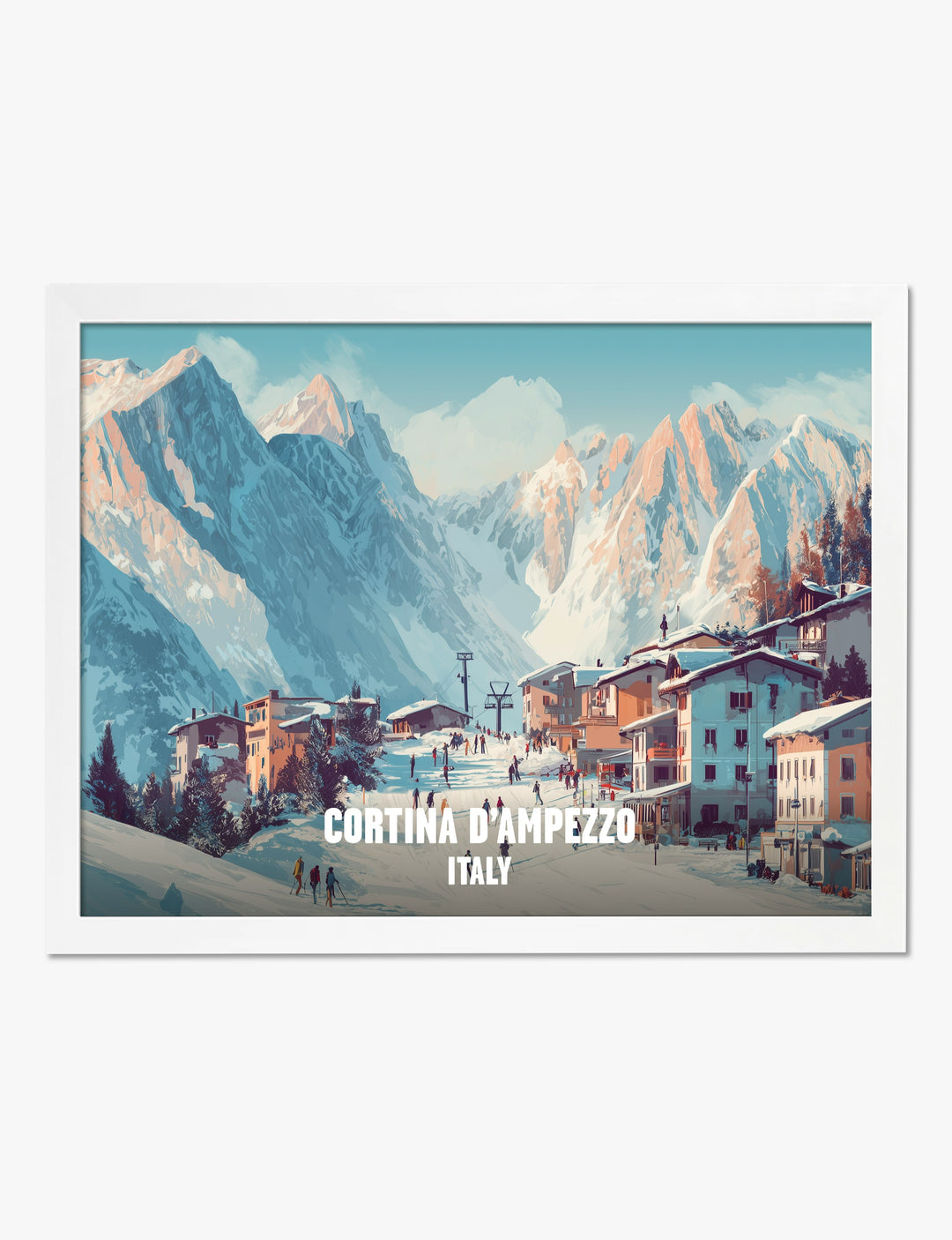 Bold peaks meet cozy charm in this captivating scene from Cortina dAmpezzo. Imagine greeting your mornings with the golden glow of sunlit mountains and the inviting warmth of pastel chalets — all from the comfort of your favorite room. This piece instantly brings a sense of adventure and tranquility, perfect for your living room or bedroom. The soft blues and gentle peach tones pop against any neutral palette, adding both energy and calm. Let this artwork turn your space into a destination — a place where every day feels a bit more scenic, a bit more inspiring, and entirely your own. Style, wanderlust, and comfort are just a frame away.