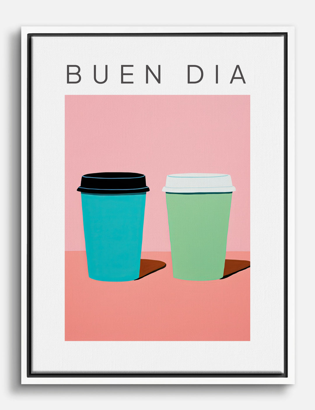 Start your day with a pop of playful color and a dash of optimism. Two stylish takeaway cups—one sky blue, one mint green—stand side by side, set against a soft pink backdrop and bold shadows. This piece instantly energizes any kitchen or breakfast nook, making every morning feel like a fresh start.